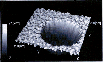 EEMやプラズマCVM等の超精密加工表面の評価に不可欠なあらゆる材質の試料に対してナノメータオーダの空間分解能を有する微小突起をプローブとした走査型近接場光学顕微鏡の開発をしています。本顕微鏡は、光を電場の振動と捉らえ、球状微小突起プローブ中で光を電子の振動に変換し、試料表面がこの電場の振動と直接相互作用する領域まで近付いたときに、プローブ中で生じる電場の大きな変化に基づいて放射される光を検出し、この検出光量を一定に制御することによって表面微細構造を計測する走査プローブ顕微鏡の一種です。現在、光の回折限界を越える横10nm程度、縦2nm以下の分解能を達成しています。