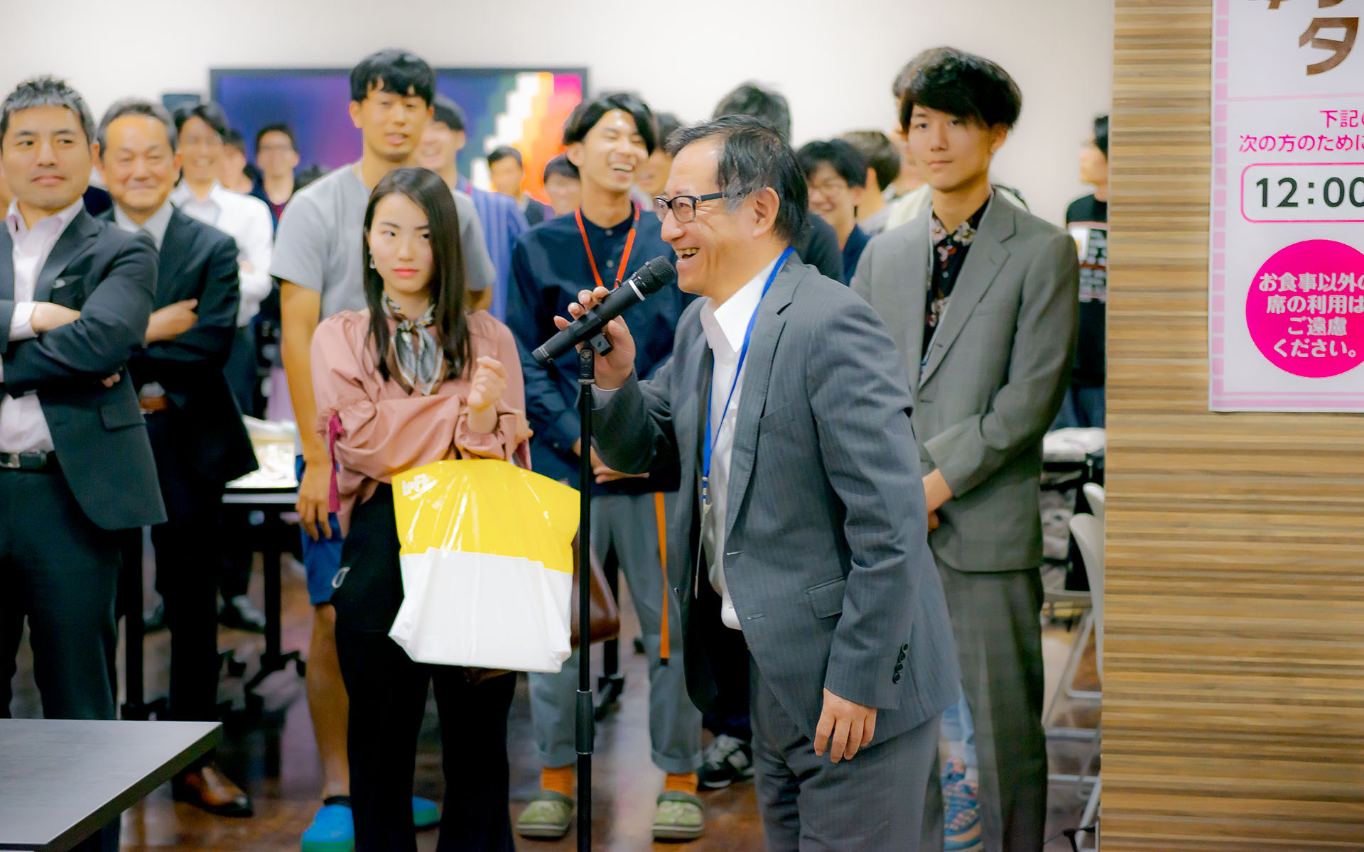 時間が過ぎるのはあっという間。楽しかった懇親会ももう終わりです。最後に教員からのメッセージです!
