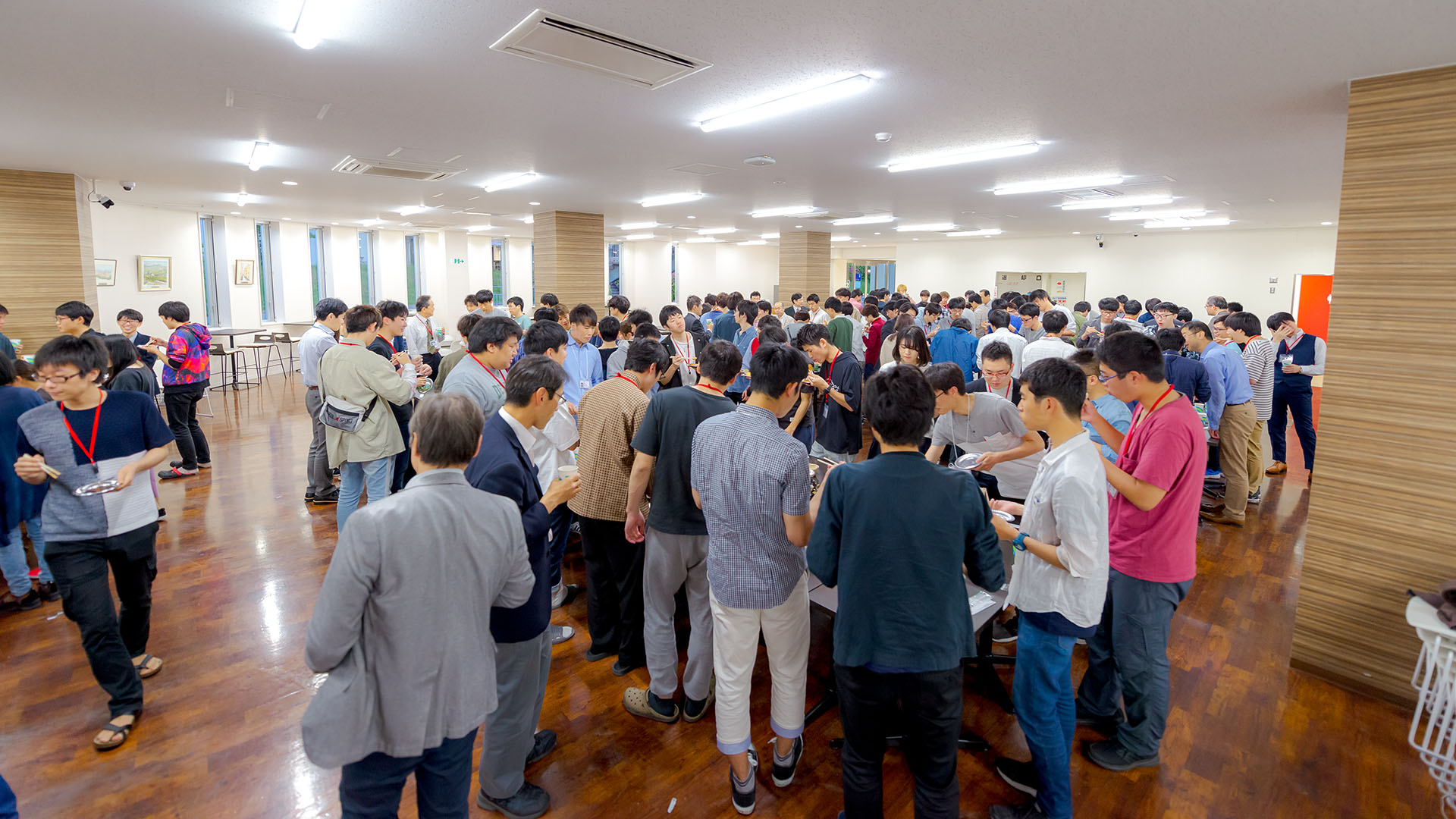 とまぁ堅苦しい話は置いといて、夜になったらお待ちかね!2~4回生から修士・博士&スタッフ・教員まで全員参加の物理工学科目大懇親会の幕開けです!