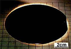 Atmospheric-pressure VHF plasma is a new type of plasma with a high radical density and small ion energy. This research project utilizes these characteristics to develop a technology for the high-rate and low-temperature fabrication process of high-quality semiconductor thin films. Figure 1 shows a single-crystal pure silicon (Si) thin film without crystallographic defects, which has been prepared at a high rate and at a temperature that is more than 500°C lower than conventional methods, together with a photograph of the atmospheric-pressure plasma used in this process.